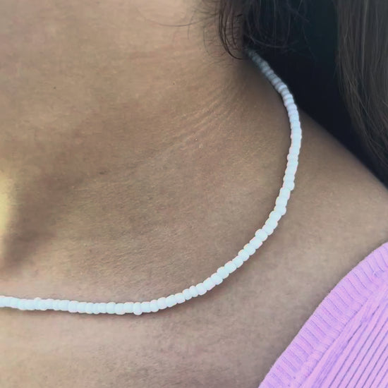This beautiful handmade necklace features simple blue and white beads, accented with a protective eye charm. Its minimalist and elegant design makes it perfect for any occasion, adding a symbolic and modern touch to your look. Whether for everyday wear or a special event, this necklace brings both style and protection in one accessory.