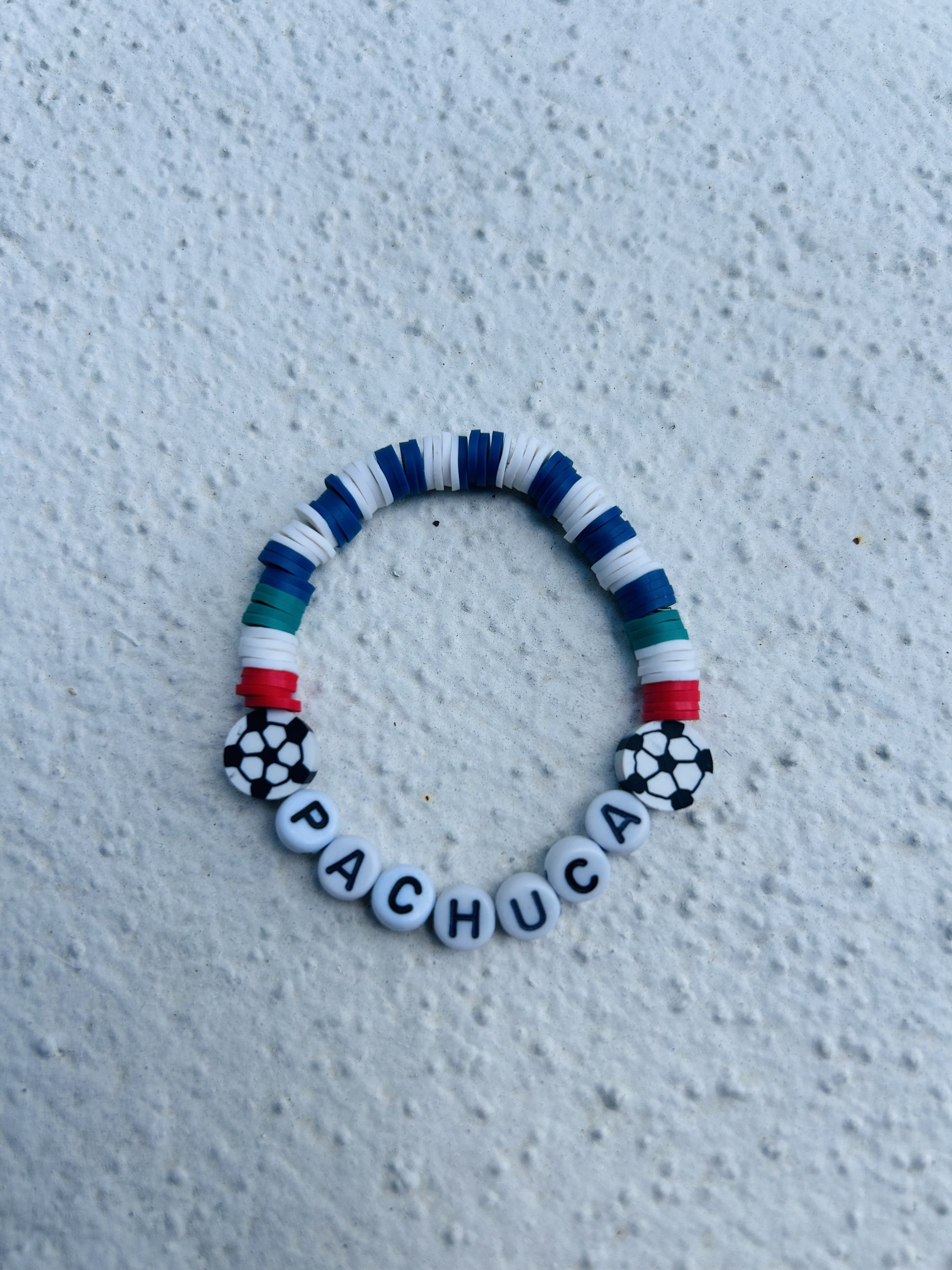 Show your love for Tuzos del Pachuca with this handmade bracelet in blue and white tones. Featuring beads that spell "Pachuca", it represents one of the most iconic clubs in Mexican football. A perfect piece for passionate fans who want to carry their team everywhere. 💙⚽